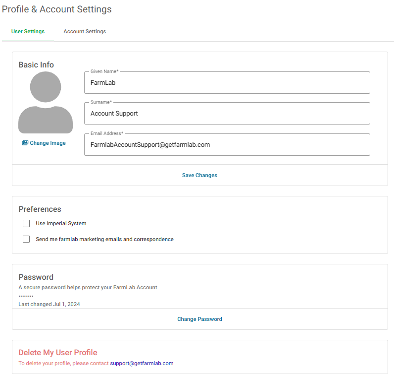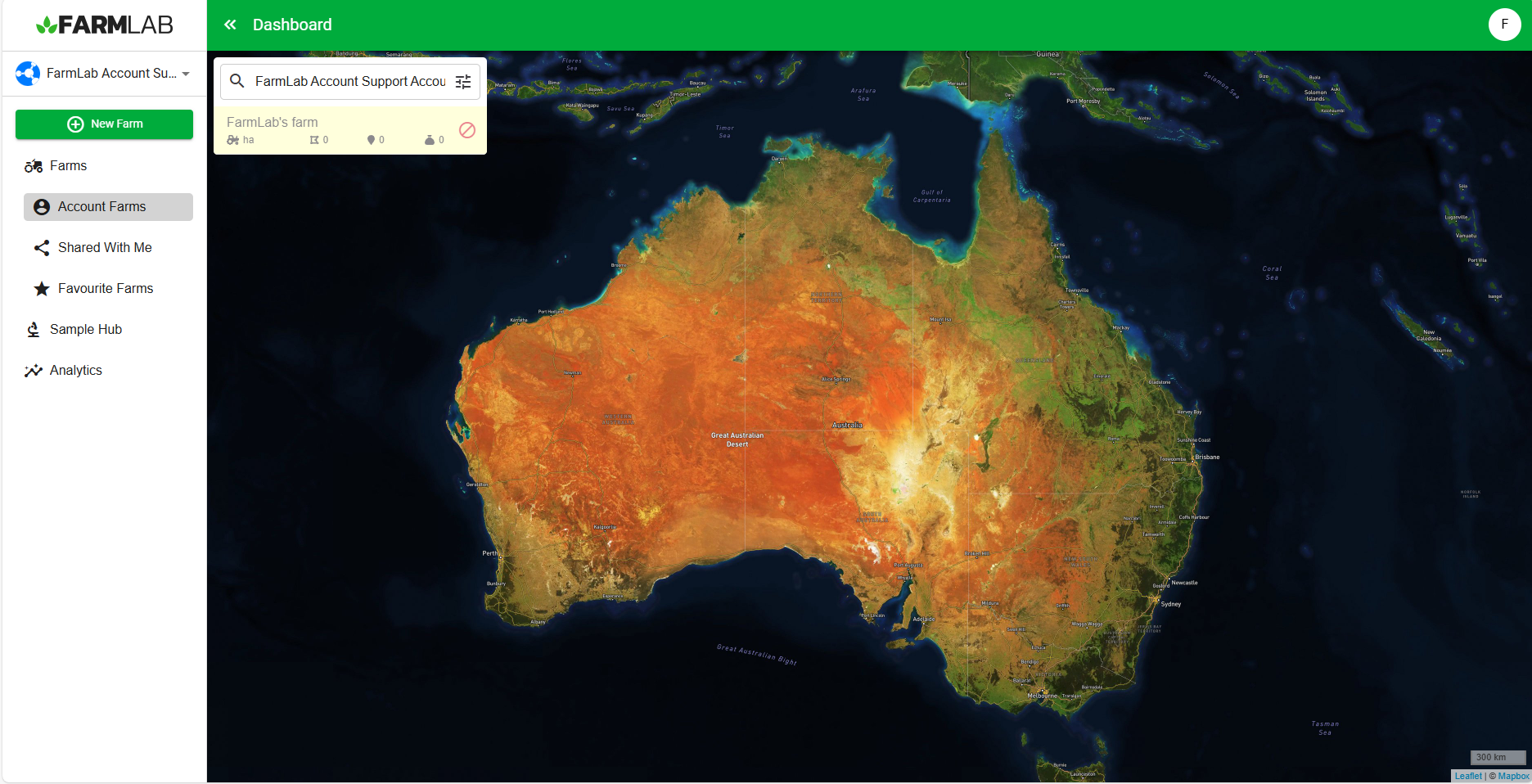 After logging into FarmLab, select the letter icon (in this case a F) at the top right hand corner of the screen.