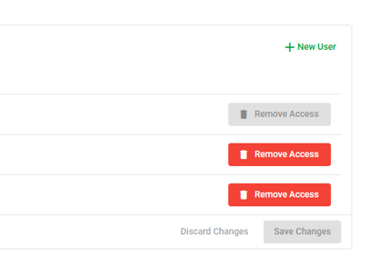 - To remove users, select the 'Remove Access' button next to the user you wish to remove, then select 'Save Changes'. This user will no longer have access to your account.