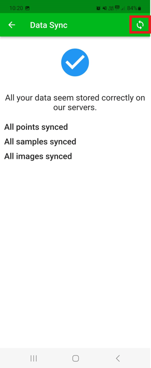 - Once sampling is completed, perform a data sync to upload the collected data.