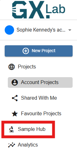 To add your lab account information into GXLab. Firstly, navigate to the Sample Hub.
