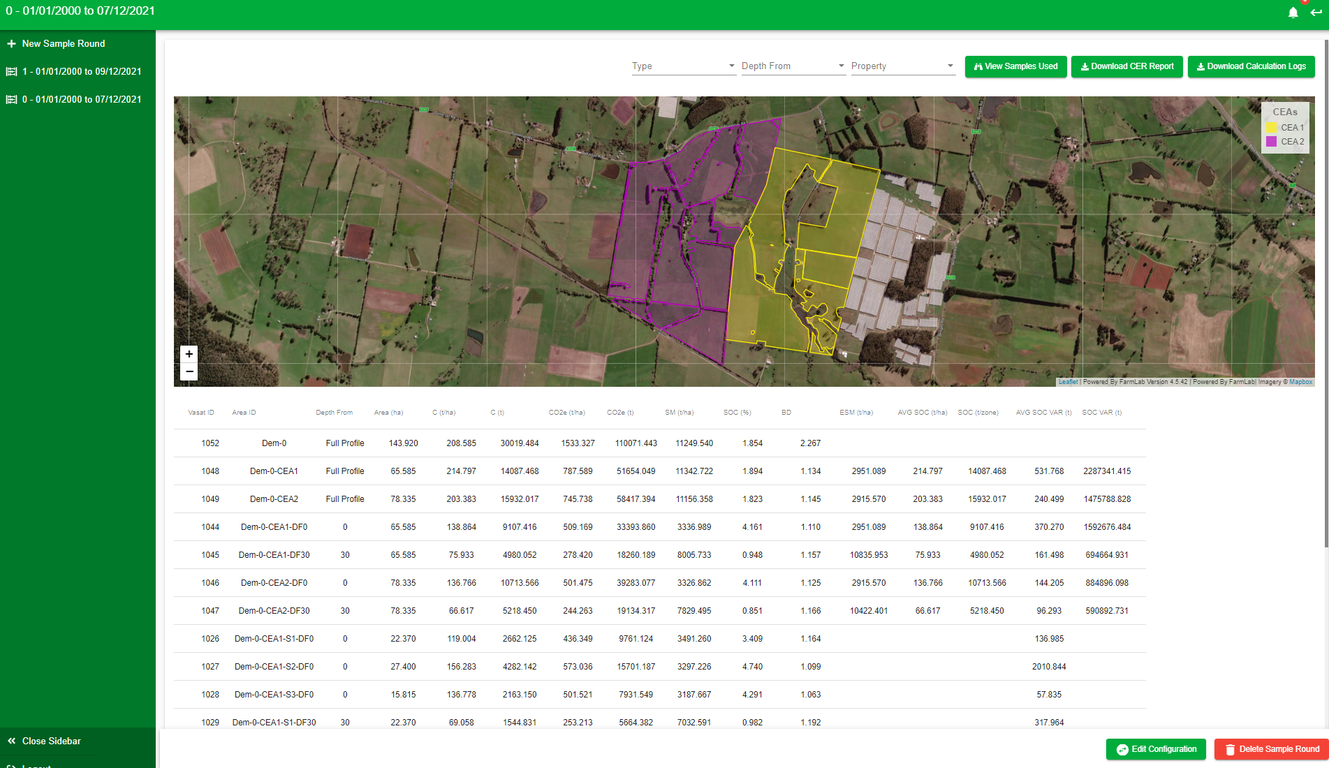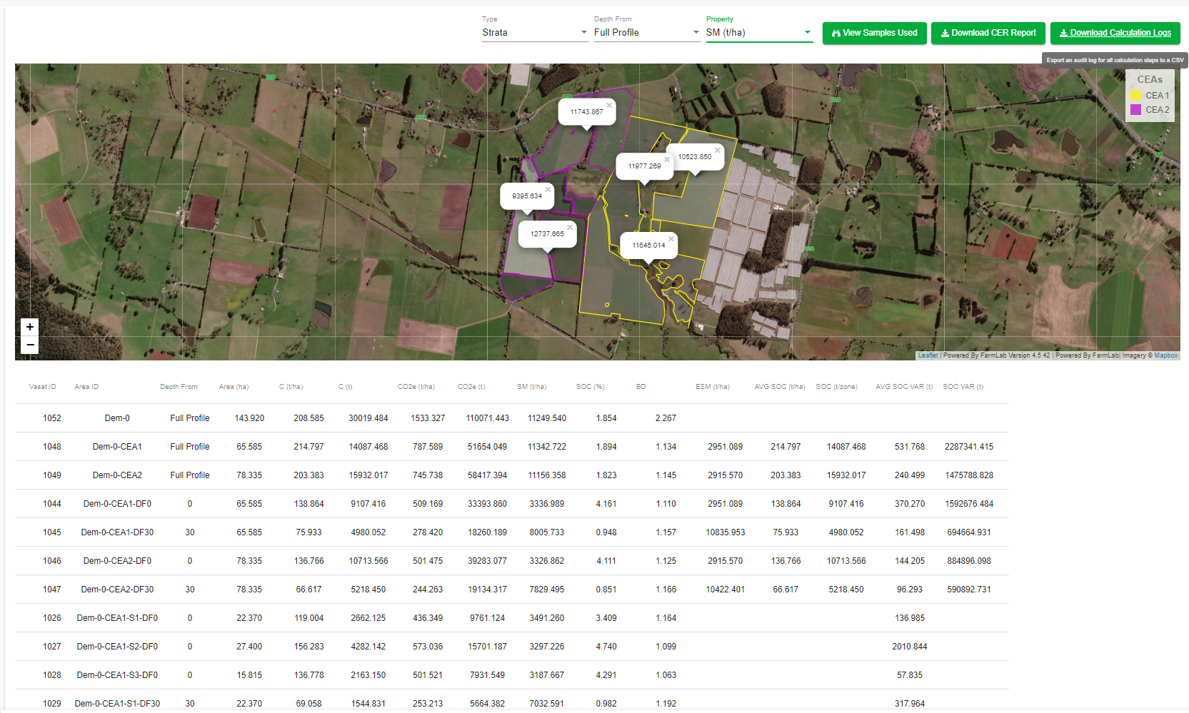 To calculate carbon across your CEAs using FarmLab, follow these steps: