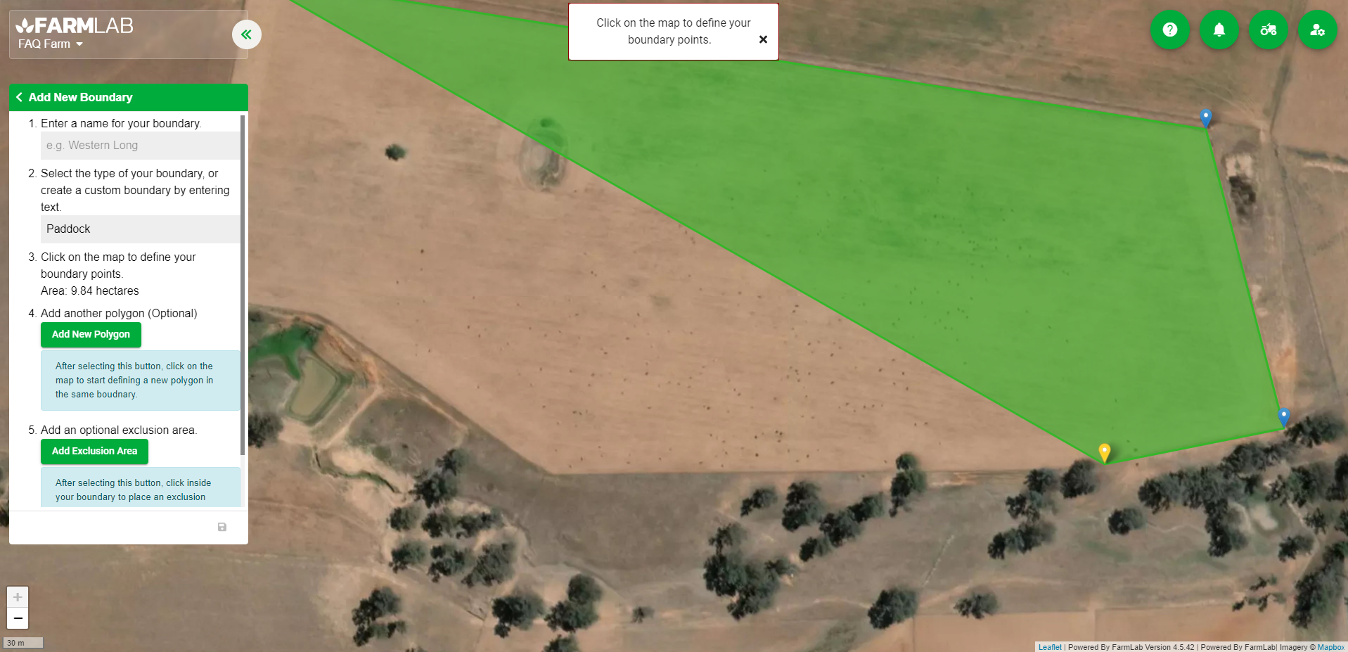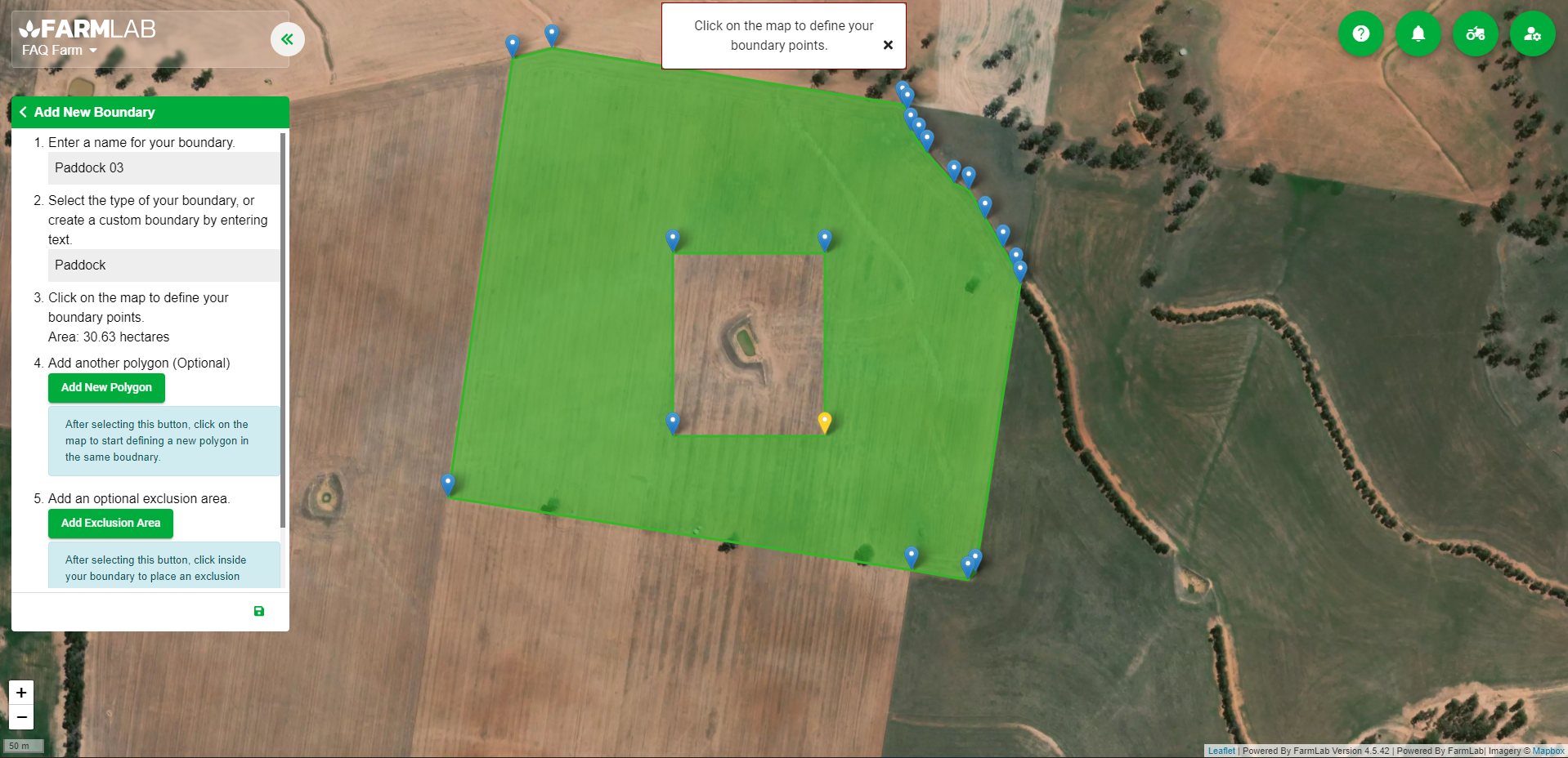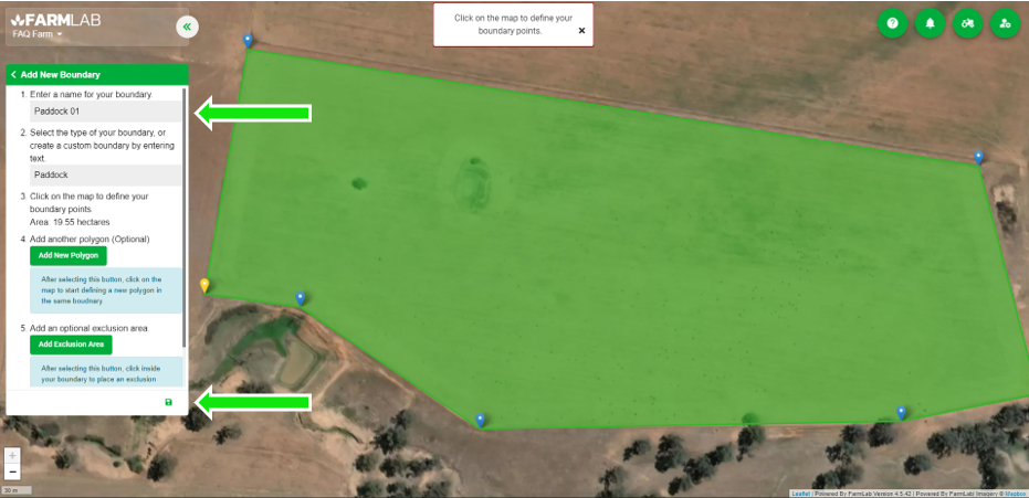 6. Follow step 5 in naming the paddock boundary and select 'Save'