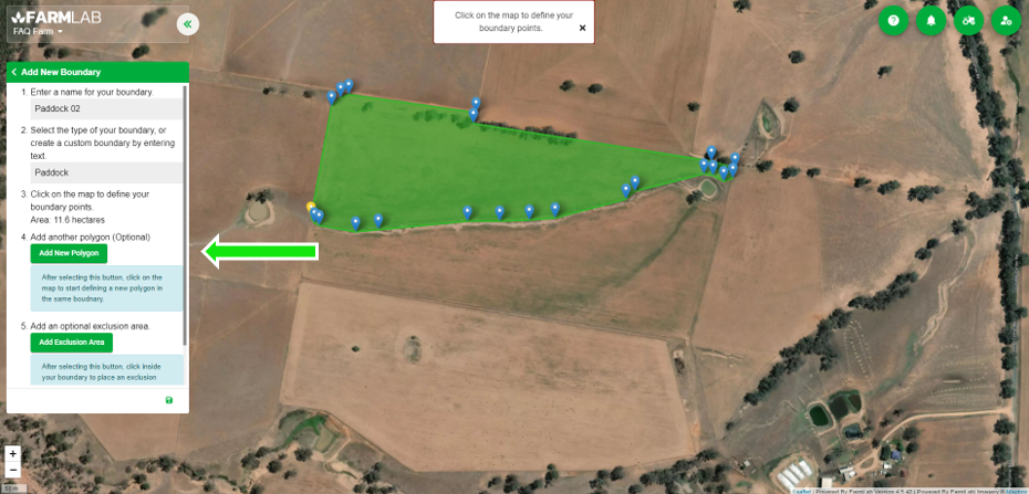 2. Draw the additional paddock areas, follow step 5, name your paddock boundary and select 'Save'