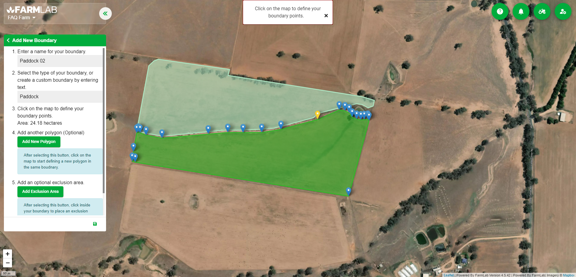 1. Follow step 4 and draw your paddock boundary