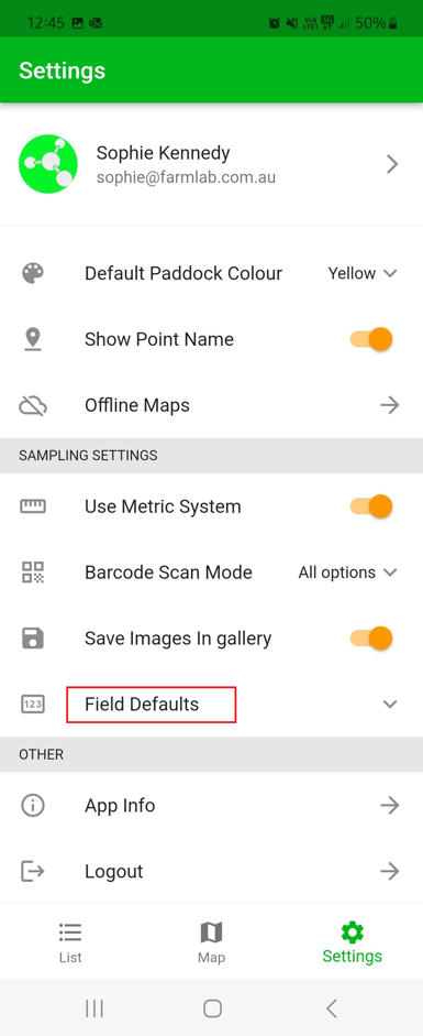 Setting Up Field Defaults in FarmLab Mobile App (Version 2.1.14)