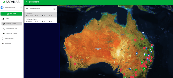 When you first sign in to your GXLab account you will be presented with a map of Australia and the view of your current farm holdings.