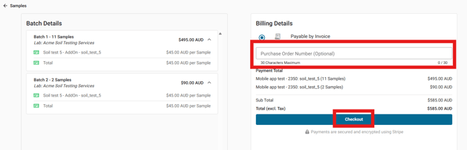 - You can also enter a purchase order number in the field provided.
