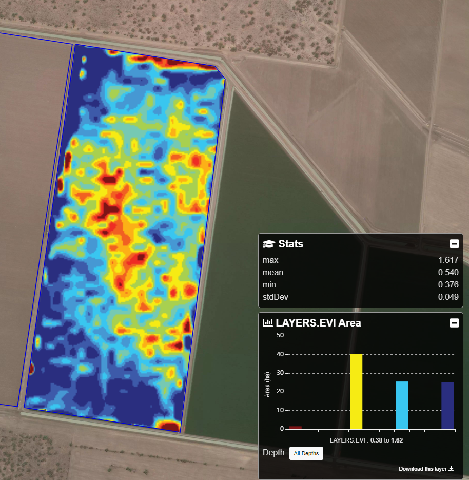 Agronomists use EVI to monitor crop health and growth throughout the growing season. By comparing EVI values across time and space, they can identify areas of concern, make informed decisions regarding irrigation and nutrient management, and optimize crop production practices.