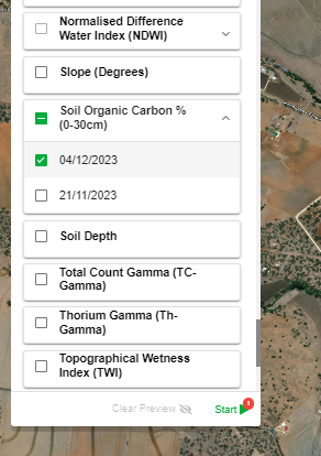 The Soil Organic Carbon % (SOC %) layer was developed by FarmLab using a combination of advanced machine learning techniques, historical soil data, and environmental factors as part of the National Soil Carbon Innovation Challenge. It is currently only available in Australia, however you can find out more about the background to the model and the challenge here: https://getfarmlab.com/advancing-soil-carbon-quantification-with-remote-sensing-and-machine-learning/